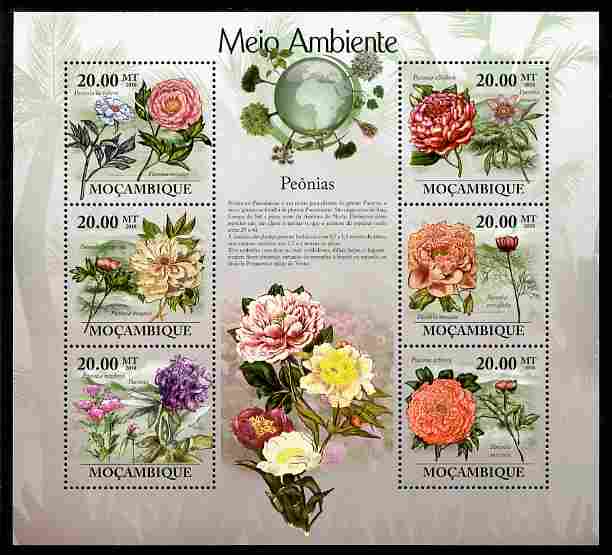 Mozambique 2010 The Environment - Peony Flower perf sheetlet containing 6 values unmounted mint Michel 3469-74