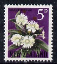 New Zealand 1960-66 Mountain Daisy 5d (from def set) with yellow of flower misplaced upwards by 5mm (appers to be omitted) unmounted mint SG 787var*