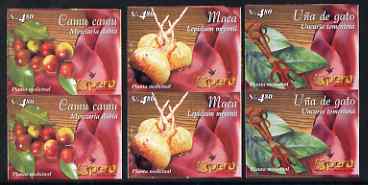 Peru 2004 Medicinal Plants set of 3 in imperf proof pairs, each with MUESTRA (Specimen) handstamp on the backs, otherwise unmounted mint