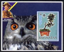 Rwanda 2005 Bonsai Tree perf m/sheet with Scout Logo, background shows Owl & Baden Powell unmounted mint