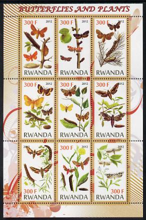 Rwanda 2012 Butterflies & Plants #2 perf sheetlet containing 9 values unmounted mint