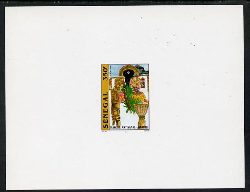 Senegal 2001 Craft Market 350f Carvings & Flower Seller imperf deluxe die proof in issued colours on white card as SG 1636