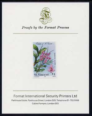 St Vincent 1985 Orchids $1 imperf proof mounted on Format International proof card