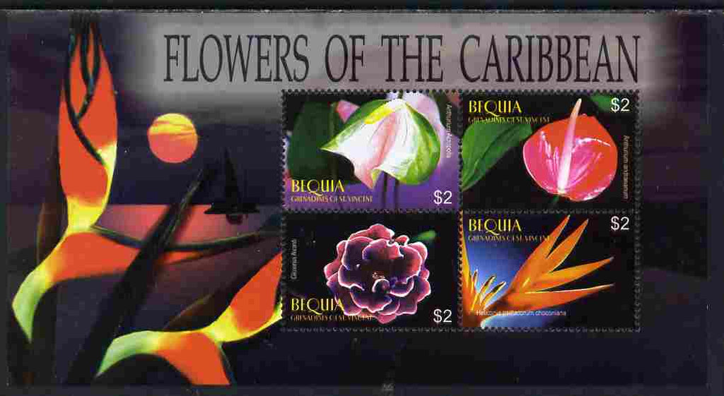 St Vincent - Bequia 2005 Flowers of the Caribbean perf sheetlet of 4 unmounted mint
