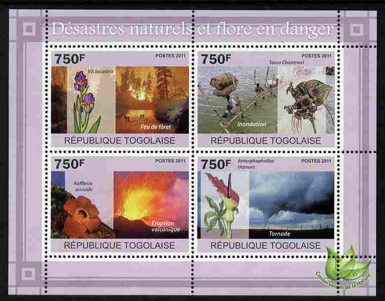 Togo 2011 Natural Disasters & Endangered Flora perf sheetlet containing 4 values unmounted mint