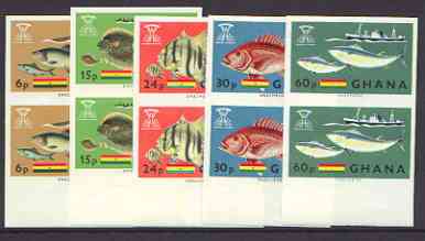 Ghana 1966 Freedom From Hunger (Fish) set of 5 in unmounted mint imperf pairs, as SG 420-24*