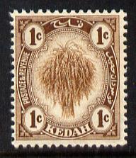 Malaya - Kedah 1919-21 Sheaf of Rice 1c brown MCA unmounted mint SG15