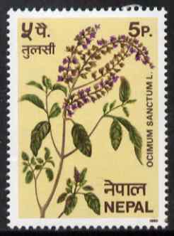 Nepal 1980 Sacred Basil (herb) 5p unmounted mint, SG 396
