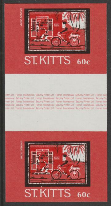 St Kitts 1985 Batik Designs 2nd series 60c (Rum Shop & Man on Bicycle) imperf inter-paneau gutter pair unmounted mint as SG 171