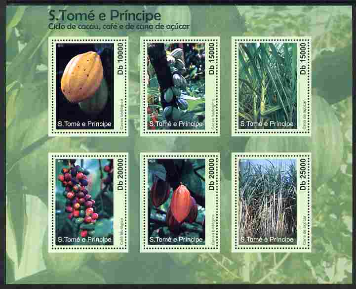 St Thomas & Prince Islands 2010 Coffee, Cocoa & Sugar Cane perf sheetlet containing 6 values unmounted mint