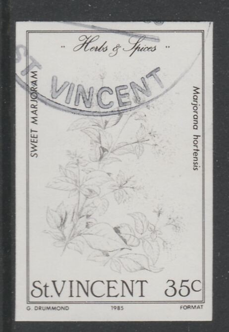 St Vincent 1985 Herbs & Spices 35c Sweet Marjoram imperf proof in black only, fine used with part St Vincent cancellation, produced for a promotion. Ex Format archives (as SG 869)