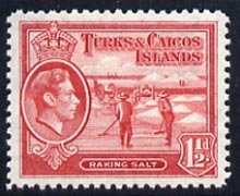 Turks & Caicos Islands 1938 KG6 Raking Salt 1.5d scarlet unmounted mint, SG 197*