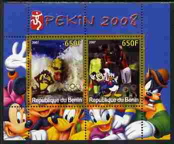 Benin 2007 Beijing Olympic Games #23 - Swimming & Football perf s/sheet containing 2 values (Disney characters in background) unmounted mint. Note this item is privately produced and is offered purely on its thematic appeal
