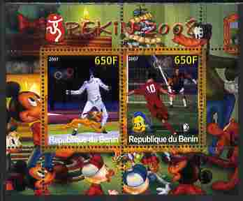 Benin 2007 Beijing Olympic Games #30 - Fencing & Football perf s/sheet containing 2 values (Disney characters in background) unmounted mint. Note this item is privately produced and is offered purely on its thematic appeal