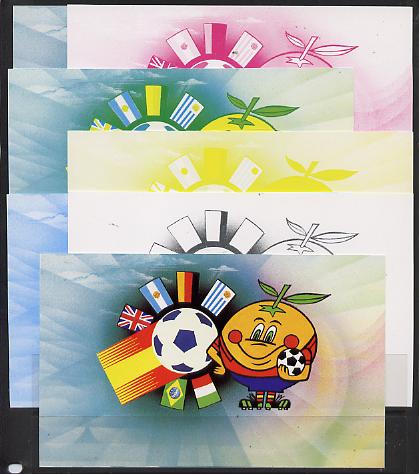 Booklet - Lesotho 1982 World Cup Football booklet x 7 progressive proofs of back cover comprising various individual or combination composites incl completed design (both sides)