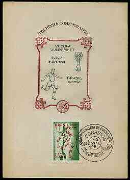 Brazil 1959 Football World Cup Victory on illustrated card (numbered from limited printing) with special first day cancel