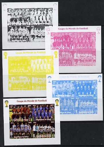 Chad 2014 Football World Cup #2 sheetlet containing 4 values - the set of 5 imperf progressive proofs comprising the 4 individual colours plus all 4-colour composite, unmounted mint.