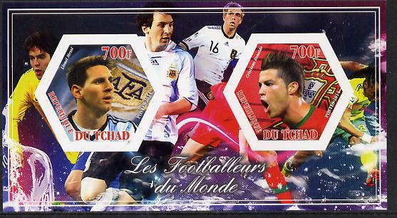 Chad 2014 Footballers of the World #1 imperf sheetlet containing two hexagonal-shaped values unmounted mint