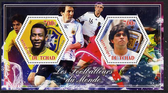 Chad 2014 Footballers of the World #2 perf sheetlet containing two hexagonal-shaped values unmounted mint