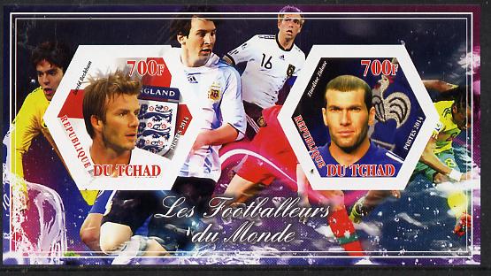 Chad 2014 Footballers of the World #3 imperf sheetlet containing two hexagonal-shaped values unmounted mint
