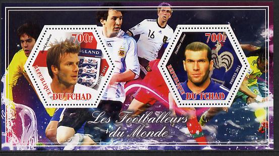 Chad 2014 Footballers of the World #3 perf sheetlet containing two hexagonal-shaped values unmounted mint