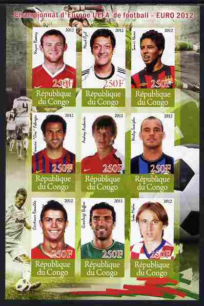 Congo 2012 Football European Championship imperf sheetlet containing 9 values unmounted mint