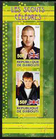 Djibouti 2010 Famous Scouts - David Beckham & Paul McCartney imperf sheetlet containing 2 values unmounted mint