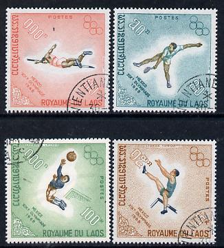 Laos 1968 Mexico Olympics perf set of 4 cto used (Hurdling, Tennis, Football, High-Jump) SG 252-55