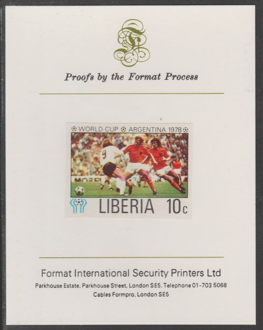 Liberia 1978 Football World Cup 10c imperf proof mounted on Format International proof card, as SG 1343
