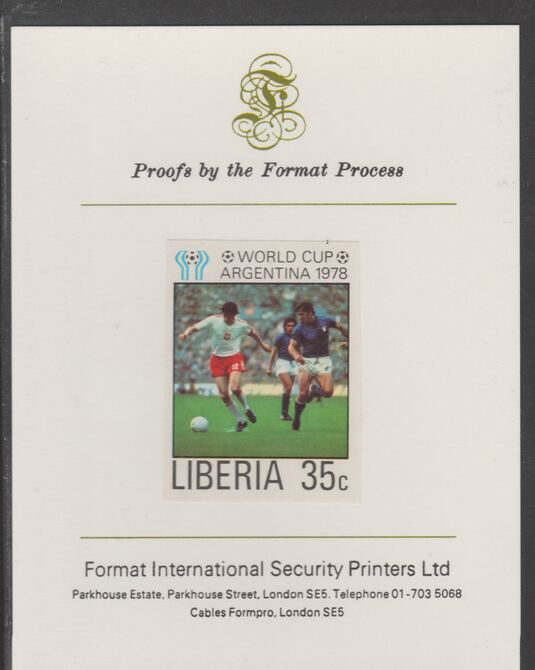 Liberia 1978 Football World Cup 35c imperf proof mounted on Format International proof card, as SG 1345