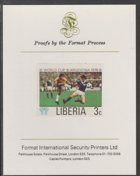 Liberia 1978 Football World Cup 3c imperf proof mounted on Format International proof card, as SG 1342