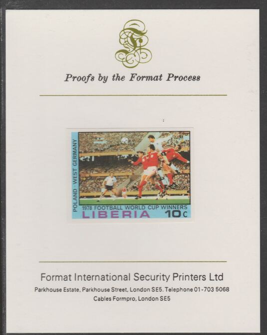 Liberia 1978 Football World Cup Winners 10c Poland v W Germany imperf proof mounted on Format International proof card, as SG 1358