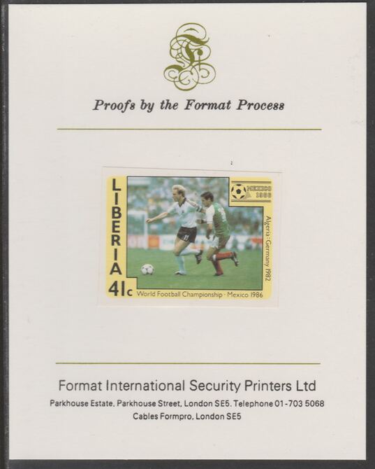 Liberia 1985 Football World Cup 41c imperf proof mounted on Format International proof card, as SG 1609