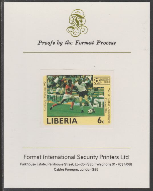 Liberia 1985 Football World Cup 6c imperf proof mounted on Format International proof card, as SG 1605