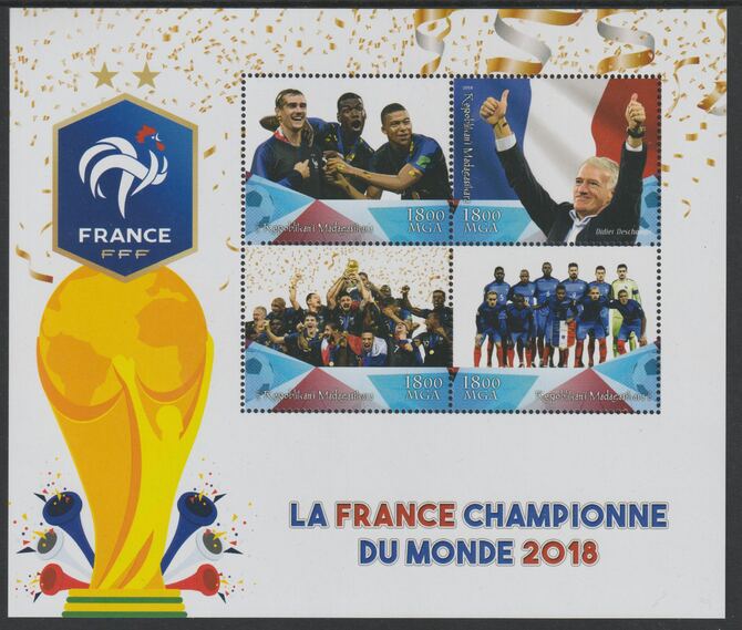 Madagascar 2018 Football World Cup Champions - France perf sheet containing four values unmounted mint