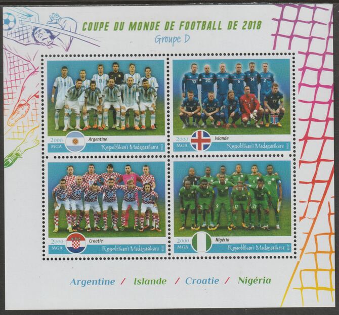 Madagascar 2018 Football World Cup - Group D perf sheet containing four values unmounted mint