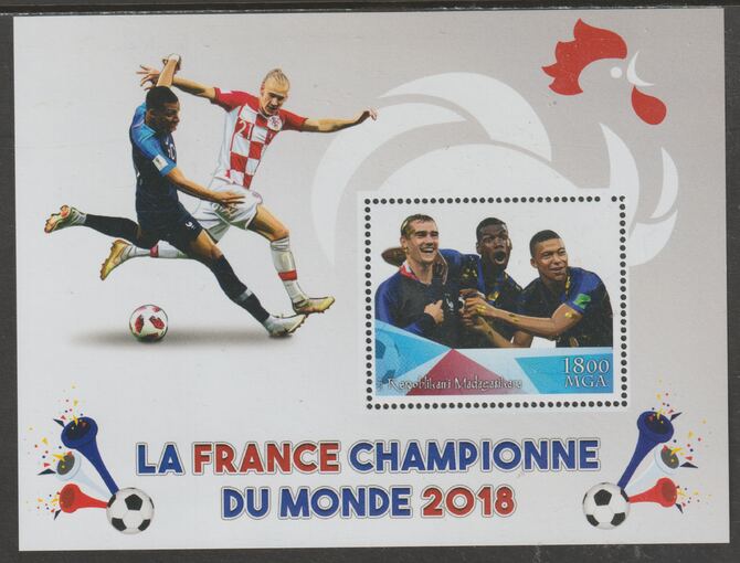 Madagascar 2018 France Football Champions perf m/sheet #2 containing one value unmounted mint