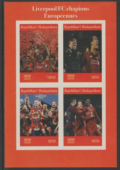 Madagascar 2019 Liverpool European Football Champions imperf sheet containing 4 values unmounted mint.