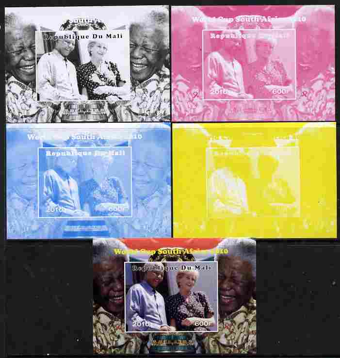Mali 2010 Football World Cup #2 individual deluxe sheetlet (Stamp shows Diana with Nelson Mandela) - the set of 5 imperf progressive proofs comprising the 4 individual colours plus all 4-colour composite, unmounted mint