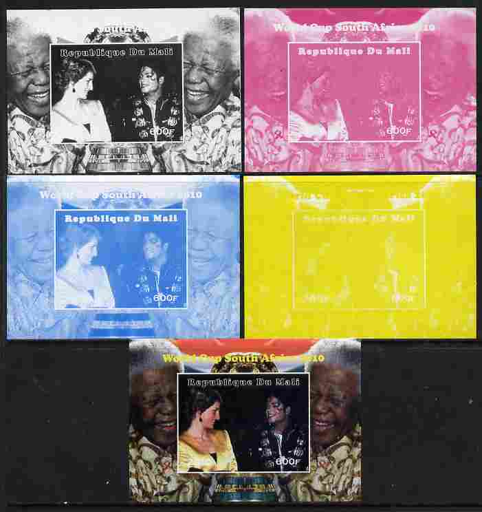 Mali 2010 Football World Cup #3 individual deluxe sheetlet (Stamp shows Diana with Michael jackson with Mandela in border) - the set of 5 imperf progressive proofs comprising the 4 individual colours plus all 4-colour composite, unmounted mint