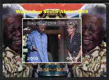 Mali 2010 Football World Cup #4 individual imperf deluxe sheetlet (Stamp shows Diana with Nelson Mandela) unmounted mint. Note this item is privately produced and is offered purely on its thematic appeal
