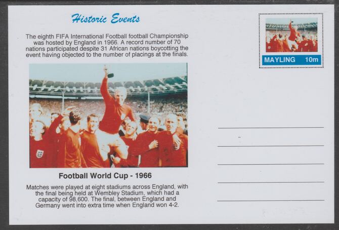 Mayling (Fantasy) Historic Events - Football World Cup 1966 - glossy postal stationery card unused and fine