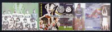 Paraguay 2002 Centenary of 'Club Olympia' Footbal Club unmounted mint se-tenant with 2 labels showing other Sports (only 15,000 produced)
