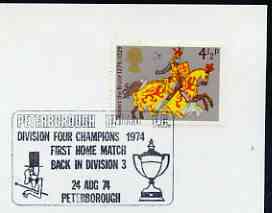 Postmark - Great Britain 1974 cover bearing illustrated cancellation for Peterborough United FC, First home match back in Division 3
