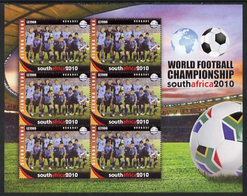 Sierra Leone 2010 Football World Cup Chamipnships - the team from Uruguay in special sheet of 6 unmounted mint as SG 4731