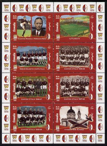 Somalia 1999 Football - Grande Torino perf sheetlet containing 8 values unmounted mint. Note this item is privately produced and is offered purely on its thematic appeal