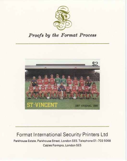 St Vincent 1987 English Football teams $2 Arsenal imperf mounted on Format International proof card, as SG 1093
