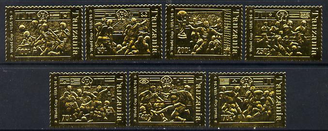 Tanzania 1994 Football World Cup set of 7 (horiz) embossed in gold foil unmounted mint, as SG 1892-98