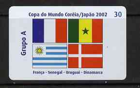 Telephone Card - Brazil 2002 World Cup Football 30 units phone card for Group A showing flags of France, Senegal, Uruguay & Denmark