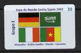 Telephone Card - Brazil 2002 World Cup Football 30 units phone card for Group E showing flags of Germany, Saudi Arabia, Ireland & Camerouns